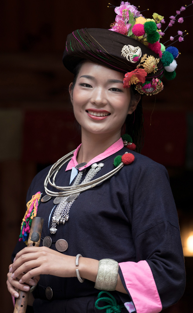傣族人口約107萬(wàn)人,主要分布在云南的德宏傣族景頗族自治州、西雙版納傣族自治州及瀾滄江流域的河谷壩子區(qū)域。傣族寨是進(jìn)入民族村的第一個(gè)村寨,占地面積27畝,三面環(huán)水,綠樹掩映。一幢幢“干欄式”傣家竹樓,通過(guò)蜿延的紅砂石小徑聯(lián)向肅穆的緬寺。巍峨壯觀的白塔,精巧玲瓏的風(fēng)雨橋,以及風(fēng)雨亭、水井、鐘亭等建筑充滿著傣家的濃郁風(fēng)情,是傣寨真實(shí)的民間景觀再現(xiàn)。一年一度的“潑水節(jié)”期間,這里都有活潑歡快的“象腳鼓舞...